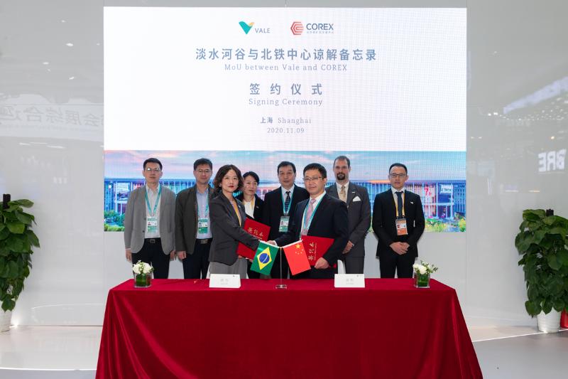 11月9日,第三届中国国际进口博览会期间,北铁中心总裁游松和淡水河谷金属(上海)总裁谢雪代表双方公司签署了谅解备忘录,中国钢铁工业协会副秘书长王颖生与北京市石景山区商务局局长吕松涛见证签约。