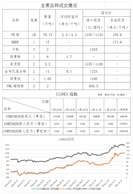 1月18日~22日成交35笔共150.62万吨,其中在途6笔共102万吨,港口29笔共48.62万吨。