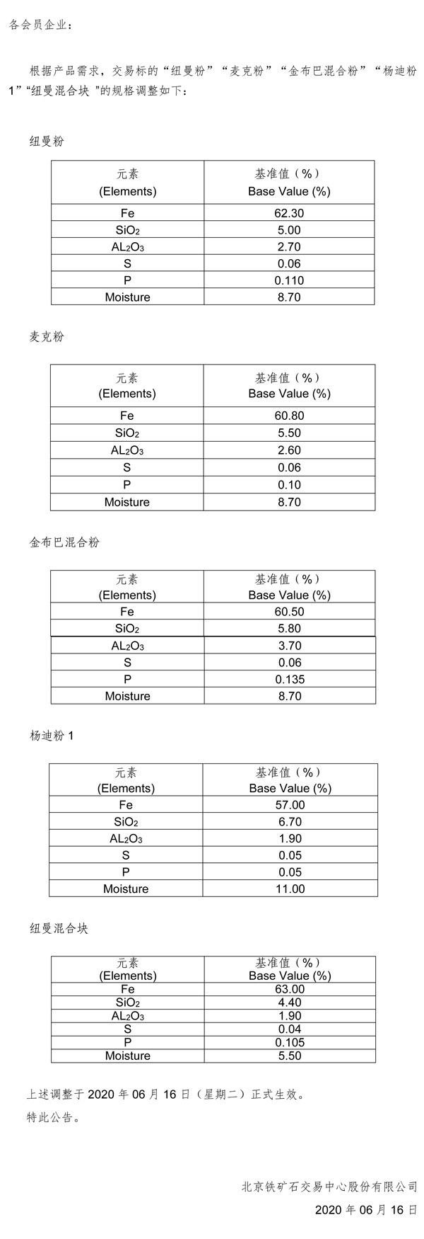 关于修订《北京铁矿石交易中心铁矿石现货浮动定价交易实施办法》的公告 关于发布《北京铁矿石交易中心矿石超市交易管理办法(试行)》的公告